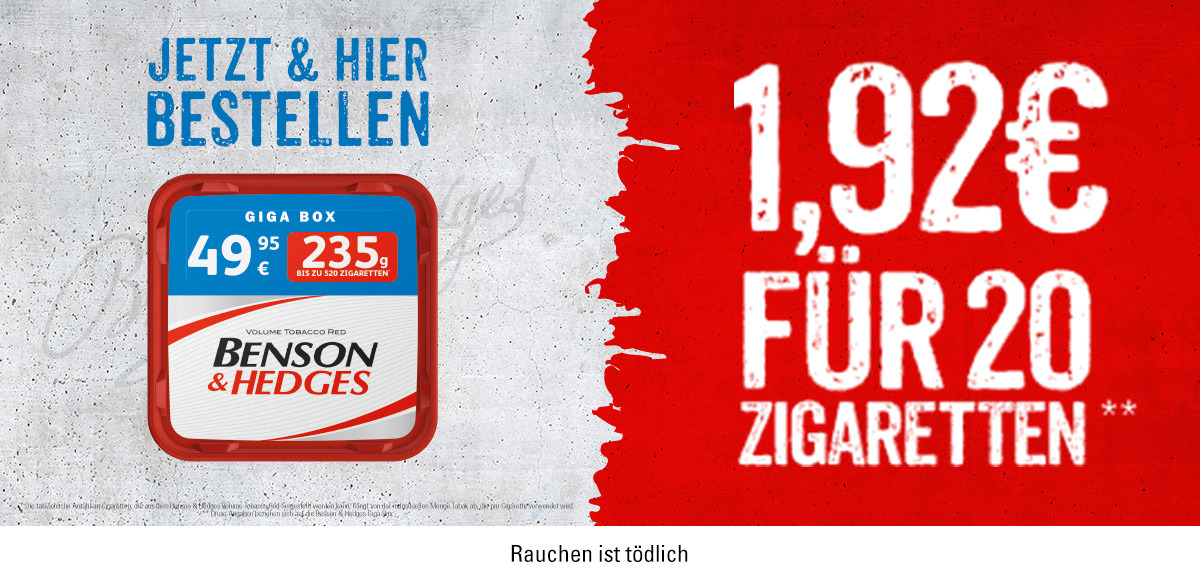 Aktion Benson & Hedges Tabak Red 235g Giga Box Sparset Extra Hülsen